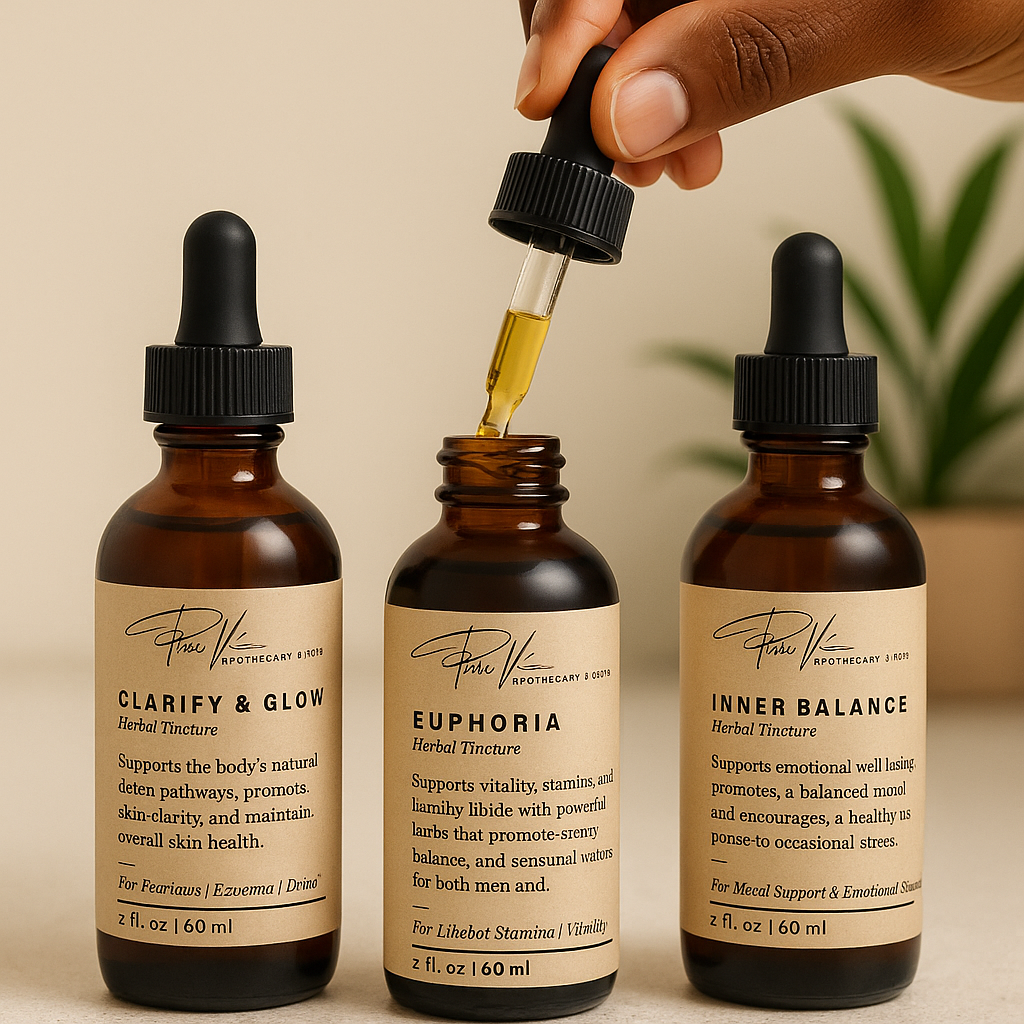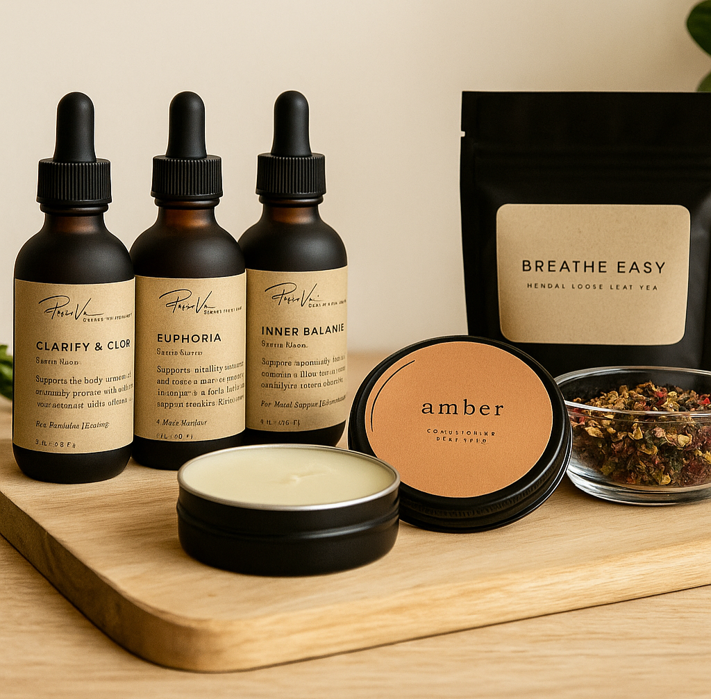 - Clarify & Glow – Detox from the inside out. Designed to support clearer skin, reduce inflammation, and gently cleanse the blood—ideal for acne, psoriasis, and whole-body balance.